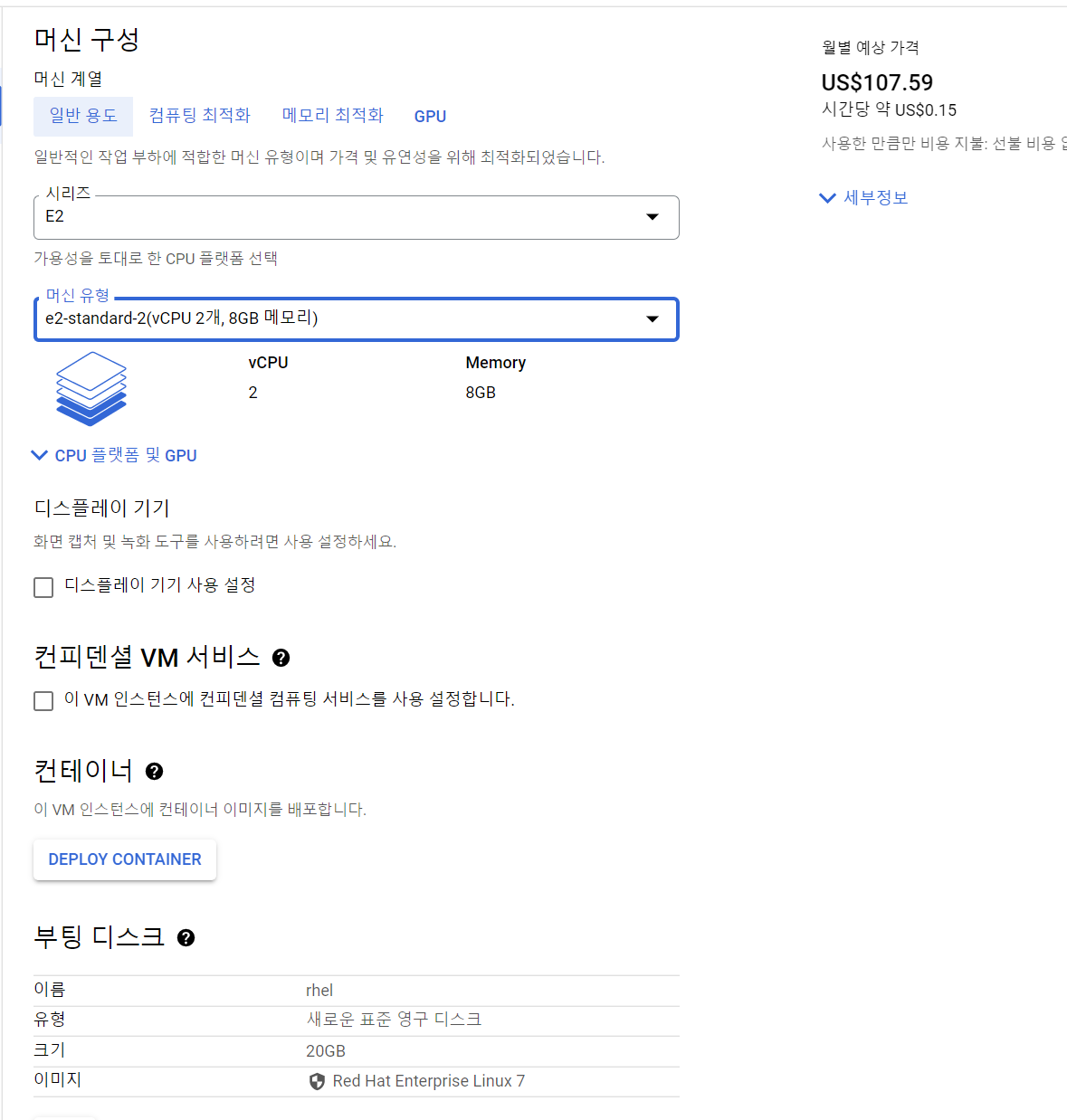 - VM생성(RHEL : RHEL 은 Red Hat 사가 개발하는 상업용 리눅스 배포판으로 Intel 과 AMD 의 x86과 x86-64 아키텍처가 주요 플랫폼이다)
