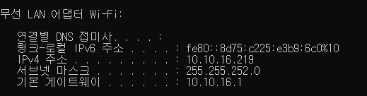 윈도우 > 네트워크 및 인터넷 > WiFi > 사용 중인 네트워크 선택 > IPv4주소 확인
