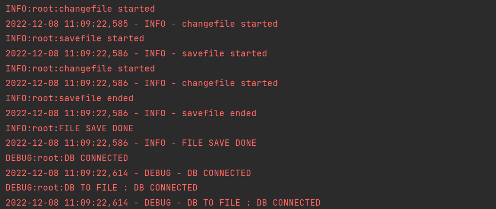 [pandas]pandas를 사용해서 쿼리에 따른 DB값 추출하여 csv로 만들기 (0) 2022.12.09 [파이썬]python sql format string / 파라미터 받아서 쿼리 작성하고 싶을 때 (0) 2022.12.09 [python] 2중for문 한줄로 작성하기 (list) (0) 2022.11.30 [Python]간단한 파일 입출력, 로그찍기 (RotatingFileHandler) (0) 2022.11.16 파일 입출력 + 로그찍기 (0) 2022.11.15