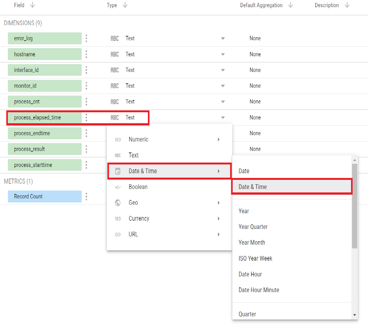 그래서 타입을 Date&Time으로 바꿔주려한다.