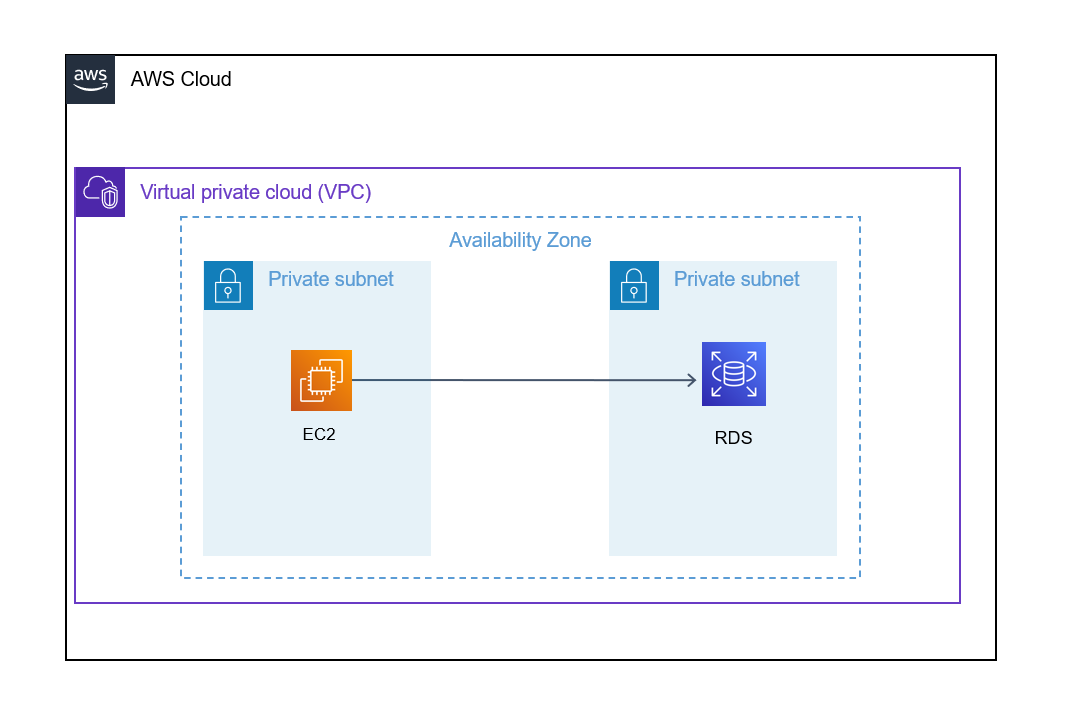 이런 구조다. 같은 가용영역 (AZ) 내에 있는 서로 다른 프라이빗 서브넷에 위치한 EC2에서 RDS에 접속하는 것.