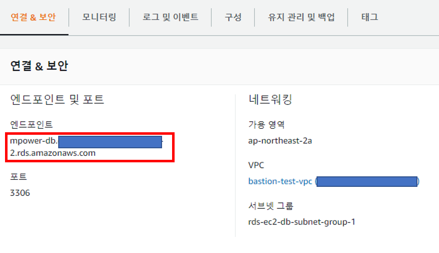 마스터 이름은 RDS생성시 개인이 설정해준거고, 엔드포인트는 RDS에 생성되면 만들어진다.