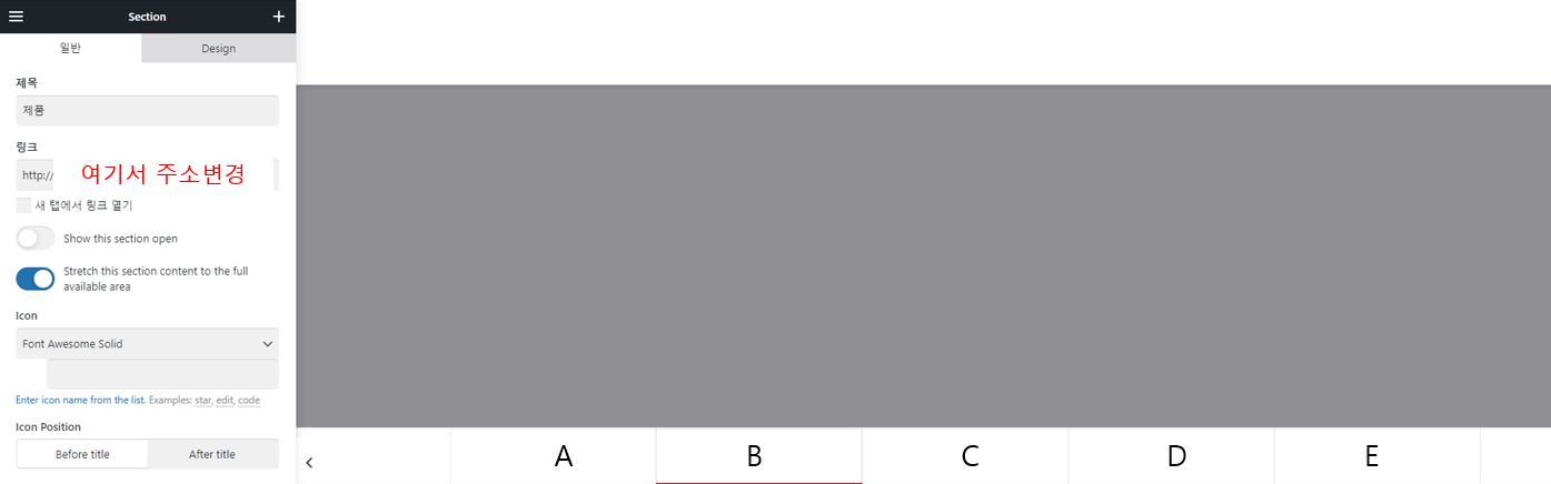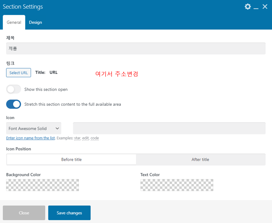 Section Settings > 링크 > Select URL 버튼 클릭해서 수정 !