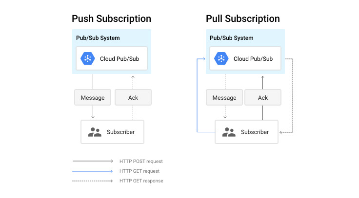 Push구독 : Message가 오면 바로 Subscriber에게 전달하는 방식