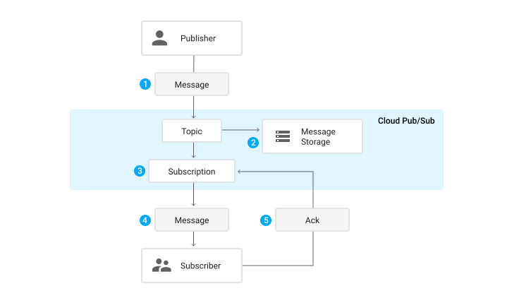 Pub/Sub의 메시지 흐름은 아래 사진과 같다.