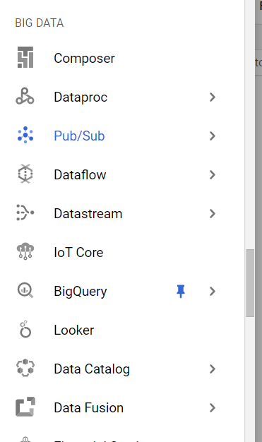 1. Bigdata- 게시/구독(Pub/Sub) - 주제 선택(Create Topic)