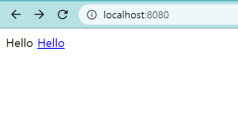 코드화면 <!DOCTYPE html> <html lang="en"> <head> <meta charset="UTF-8"> <meta http-equiv="X-UA-Compatible" content="IE=edge"> <meta name="viewport" content="width=device-width, initial-scale=1.0"> <title>Document</title> </head> <body> <b1>Hello</b1> <a href="/hello">Hello</a> </body> </html>요 html 기본코드는 그냥 저어엉말 기본인데, 하나하나 치기보다는 VisualStudio Code에서 html파일 만들고 거기에 html:5치고 엔터치면 만들어진다. 거기에 Hello 들만 적어준거임.