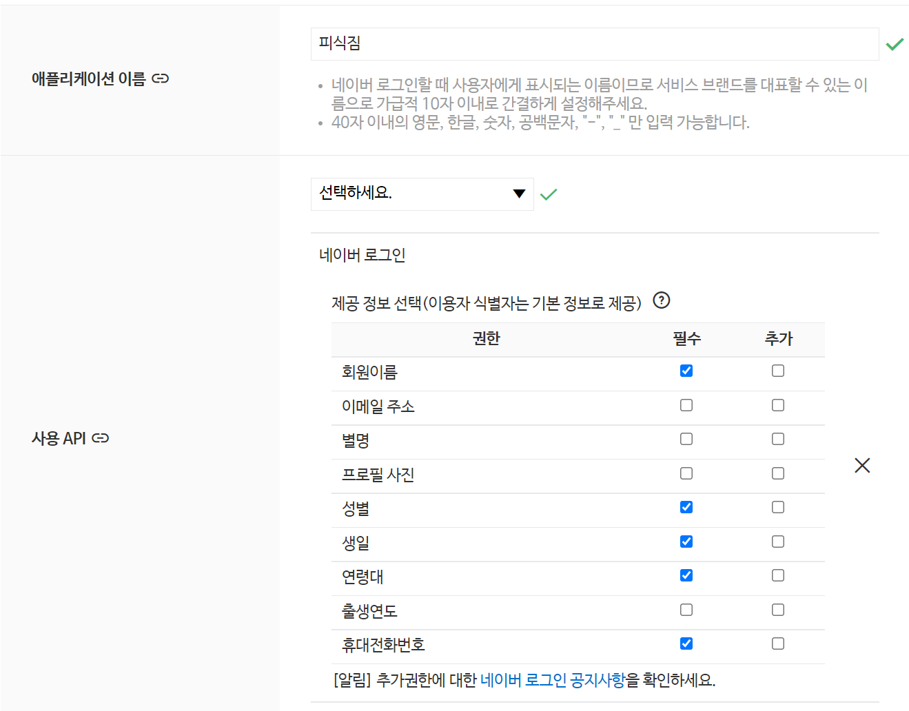 ++) 위에서도 언급했지만 애플리케이션 등록할 때 '필수' 표시를 안한 정보는 불러올 수 없다.